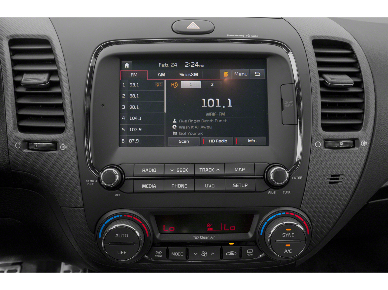- LX POPULAR PACKAGE -inc: covered console w/dual 12v outlet and drive mode select Auto-On/Off Headlights Dual Illuminated Visor Vanity Mirrors Front Passenger Seat Back Map Pocket Overhead Map Light Illuminated Ignition & Glovebox Sunglass Holder Cruise Control steering wheel mounted controls Rear Center Armrest w/Cupholders Radio: UVO eServices Infotainment AM/FM/MP3 SiriusXM satellite radio Apple CarPlay and Android Auto smartphone integration USB/auxiliary input jacks 7 touch-screen display rearview camera 6 speakers including tweeter speakers Bluetooth® wireless technology w/voice recognition and steering-wheel-mounted audio controls Front Sliding Armrest (vs non-sliding on center console)